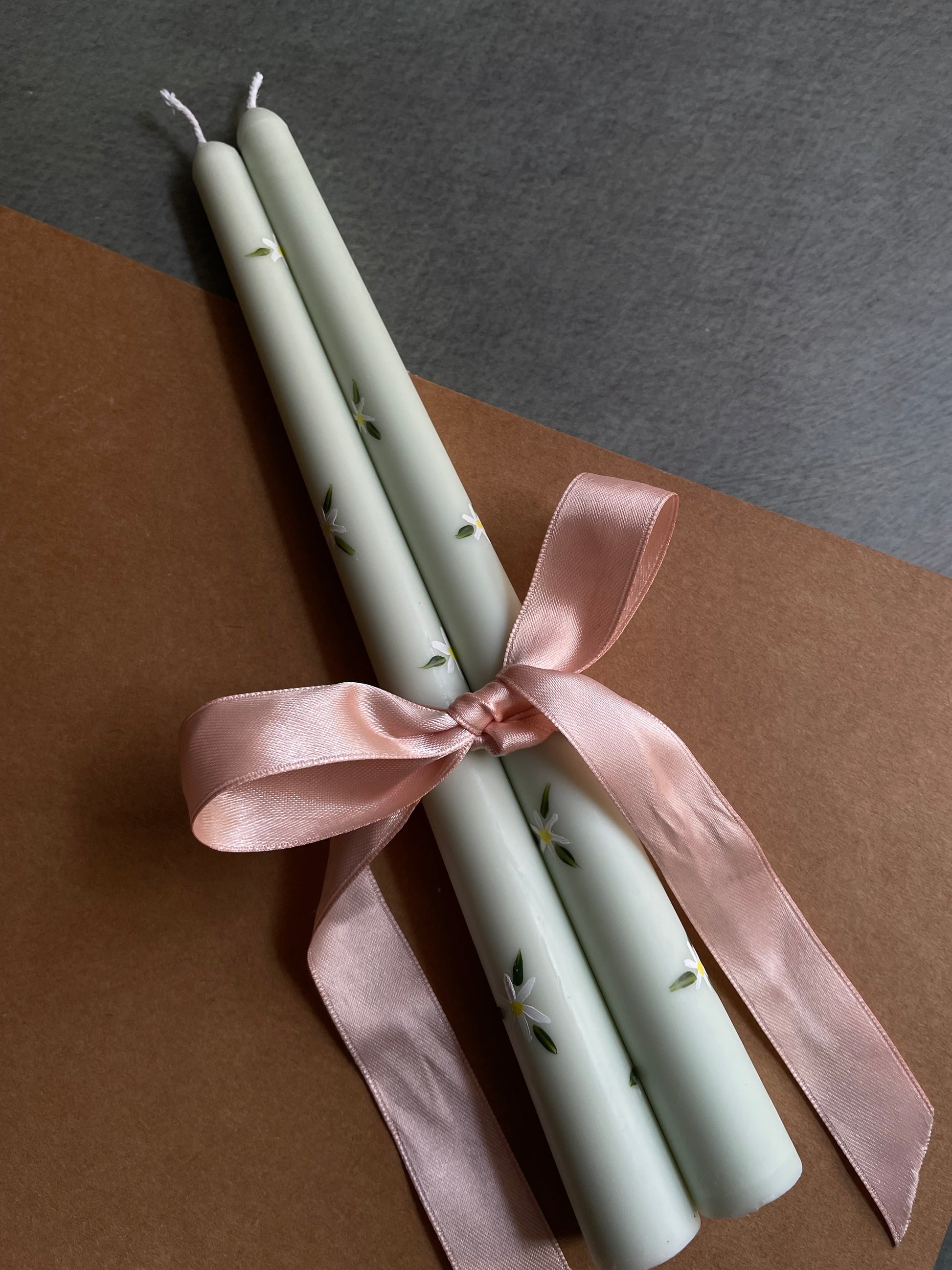 Lily of the Valley Scented Hand-Painted Soy Taper Candle – Elegant, Delicate & Artfully Crafted