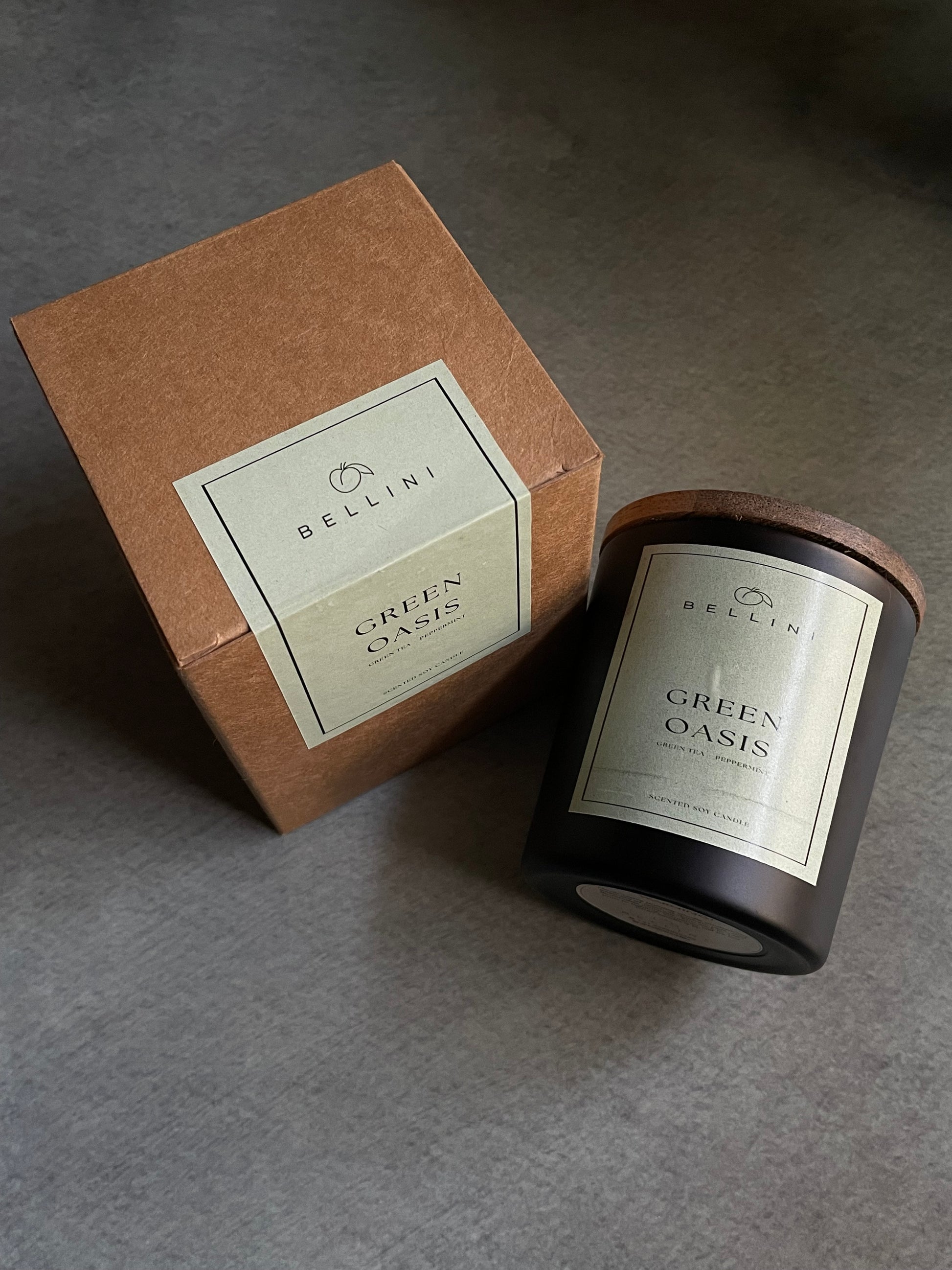 - Contents: 1 Green Tea & Peppermint scented soy candle, beautifully packaged